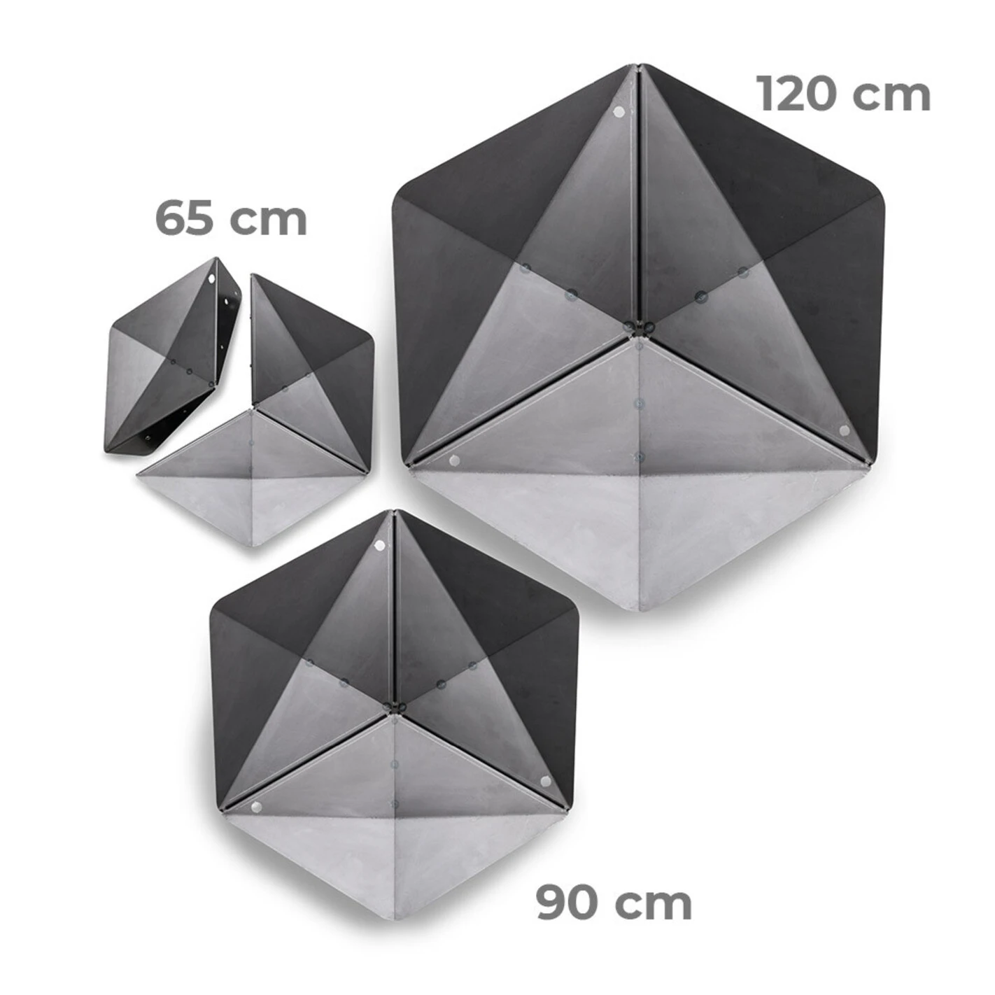 Divisé en 3 parties distinctes, ce grand bol de feu est parfait pour offrir un feu ouvert avec une vue directe sur les flammes dansantes. Sa forme hexagonale est originale et rappelle le design d’une fleur ou d’une feuille. Parfait pour habiller votre jardin !
