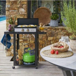 Plus qu’une simple plancha : le combo design rouge en acier peint epoxy devient votre cuisine extérieur mobile. Grâce à deux roues, il se déplace facilement là où vous en avez besoin et apporte une touche colorée à votre extérieur.