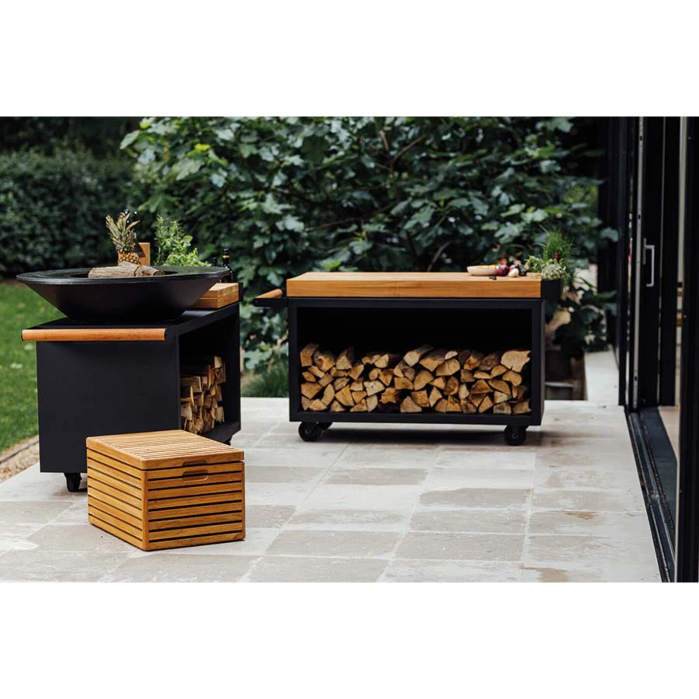 Plus qu’un simple accessoire, la glacière Ofyr Cooler s’accorde élégamment avec votre brasero plancha. Son design en bois de teck protège de manière optimale vos aliments tout en offrant une esthétique attrayante. Disposez de tous vos ingrédients directement à portée de main. Pas besoin de multiplier les allers-retours entre la cuisine et le jardin pour cuisiner !