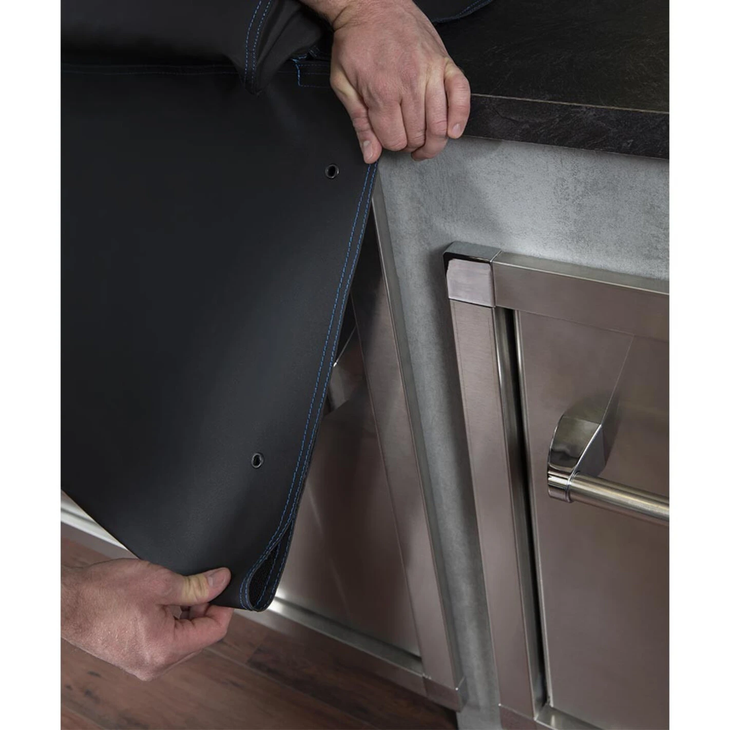 Une poignée facilite le retrait et l’installation de la housse de protection sur votre barbecue Broil King encastrable 4 Brûleurs.