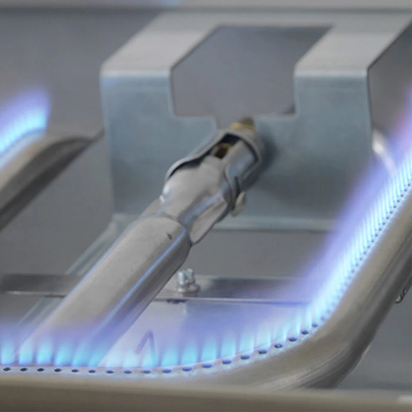 Plancha gaz inox (plaque + châssis) suffisamment grande pour cuisiner pour 6 à 8 personnes.