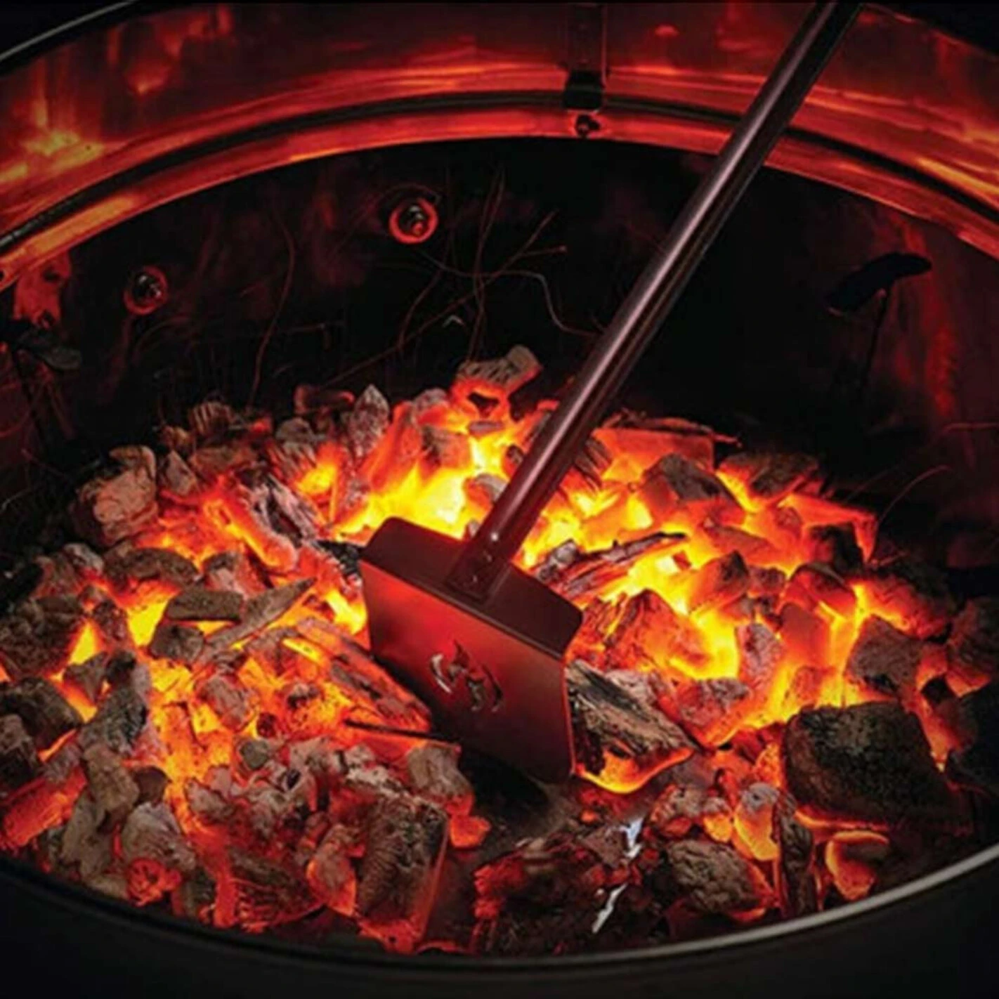 Le râteau permet d’atteindre et remuer vos braises en toute sécurité. Son extrémité en forme de crochet sert aussi à retourner les grilles de votre barbecue tout en gardant vos mains à distance de la chaleur.