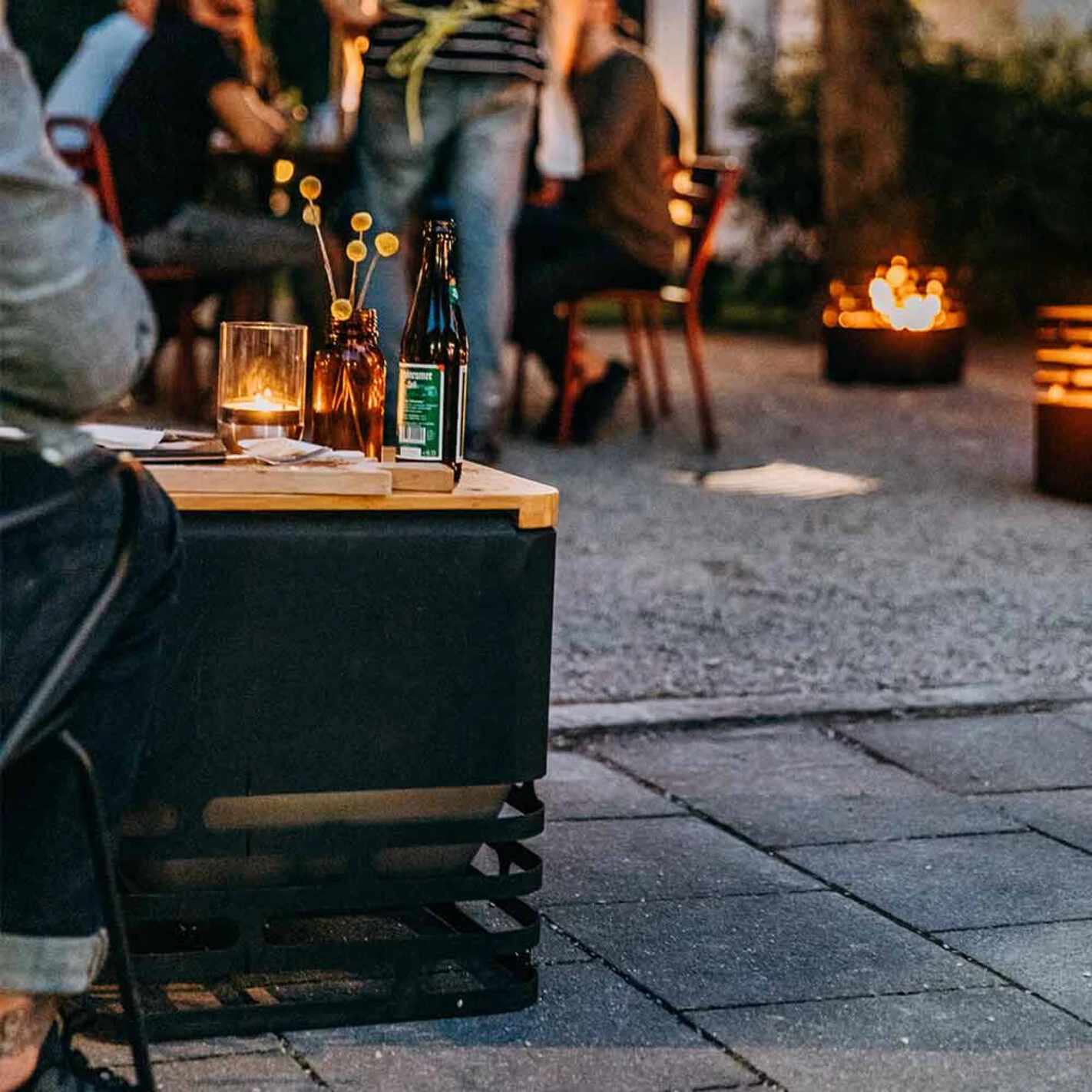 Transformez votre brasero Cube Höfats en un meuble de jardin très design grâce à l’ajout de cette tablette en bambou parfaitement adaptée.